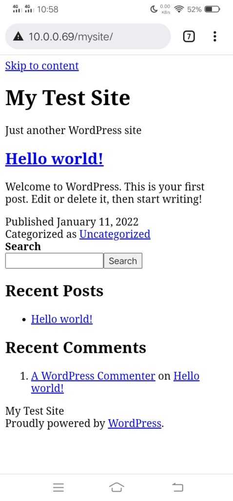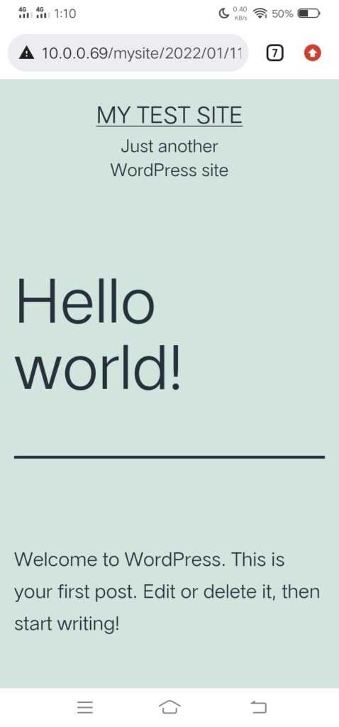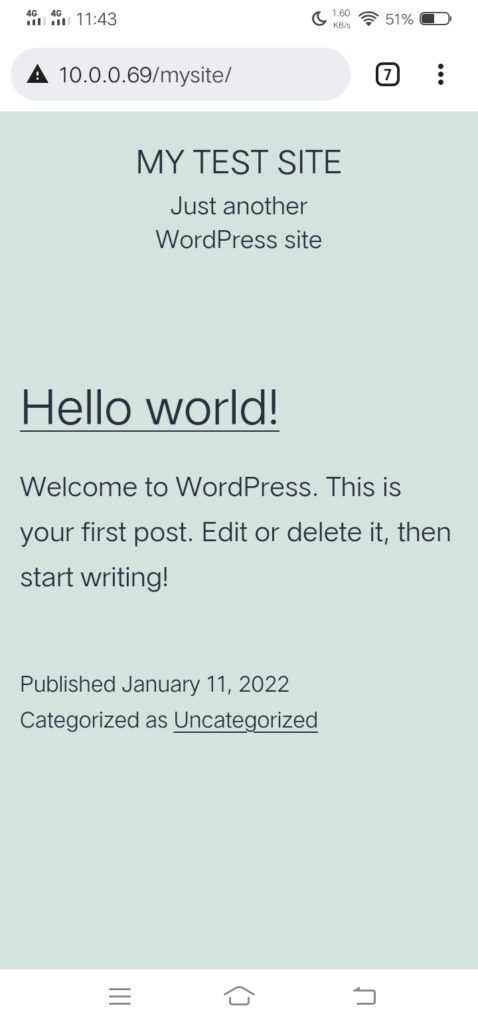 Now, if you run the address in your mobile phone, it should be able to access your site, but it will look ugly like this:
