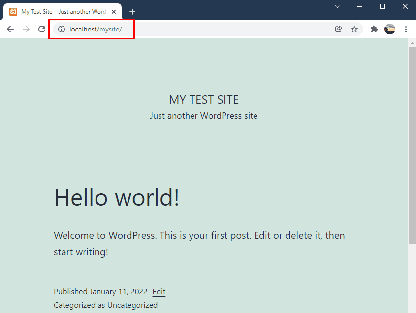 Check that your WordPress site is running successfully, just type in your browser localhost/mysite (change mysite to the name of the folder you installed wordpress in)